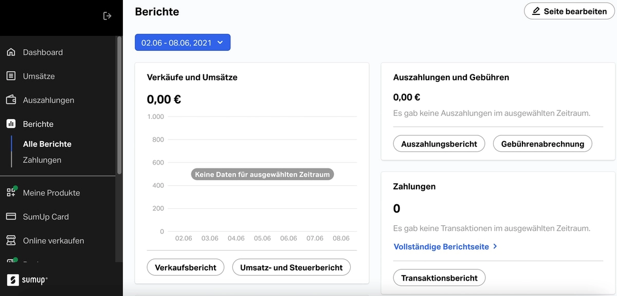 Wer mehr als einen einfachen Transaktions-Überblick braucht, kann Details im SumUp Dashboard auf dem PC einsehen. Hier können Sie Verkäufe analysieren, Verkaufsberichte exportieren und Zahlungen für Ihre Steuererklärung sortieren.