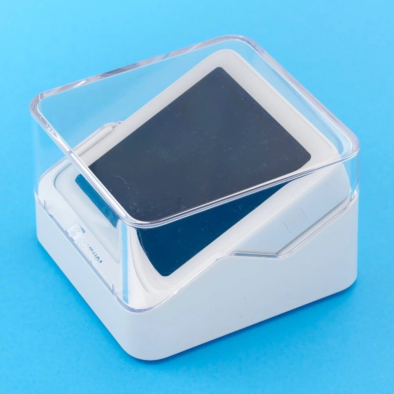 Der schwarz-weiße Touchscreen überzeugt durch schnelle Reaktion. Im Stand-By-Modus aktivieren Sie ihn durch Tippen. Während des Ladens in der Ladestation müssen Sie den Power-Button an der Seite drücken, um den Bildschirm zu aktivieren.