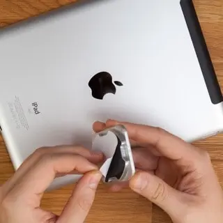 Trotz Formschönheit und Funktionalität vergeben wir einen Minuspunkt. Bei diesem Ständer muss die Adapterplatte, mit welcher das Tablet in die Halterung eingehängt wird, auf das Tablet oder iPad dauerhaft geklebt werden. Zwar wird angeraten, dass man den von SumUp vorinstallierten iPad mit diesem Ständer benutzt.